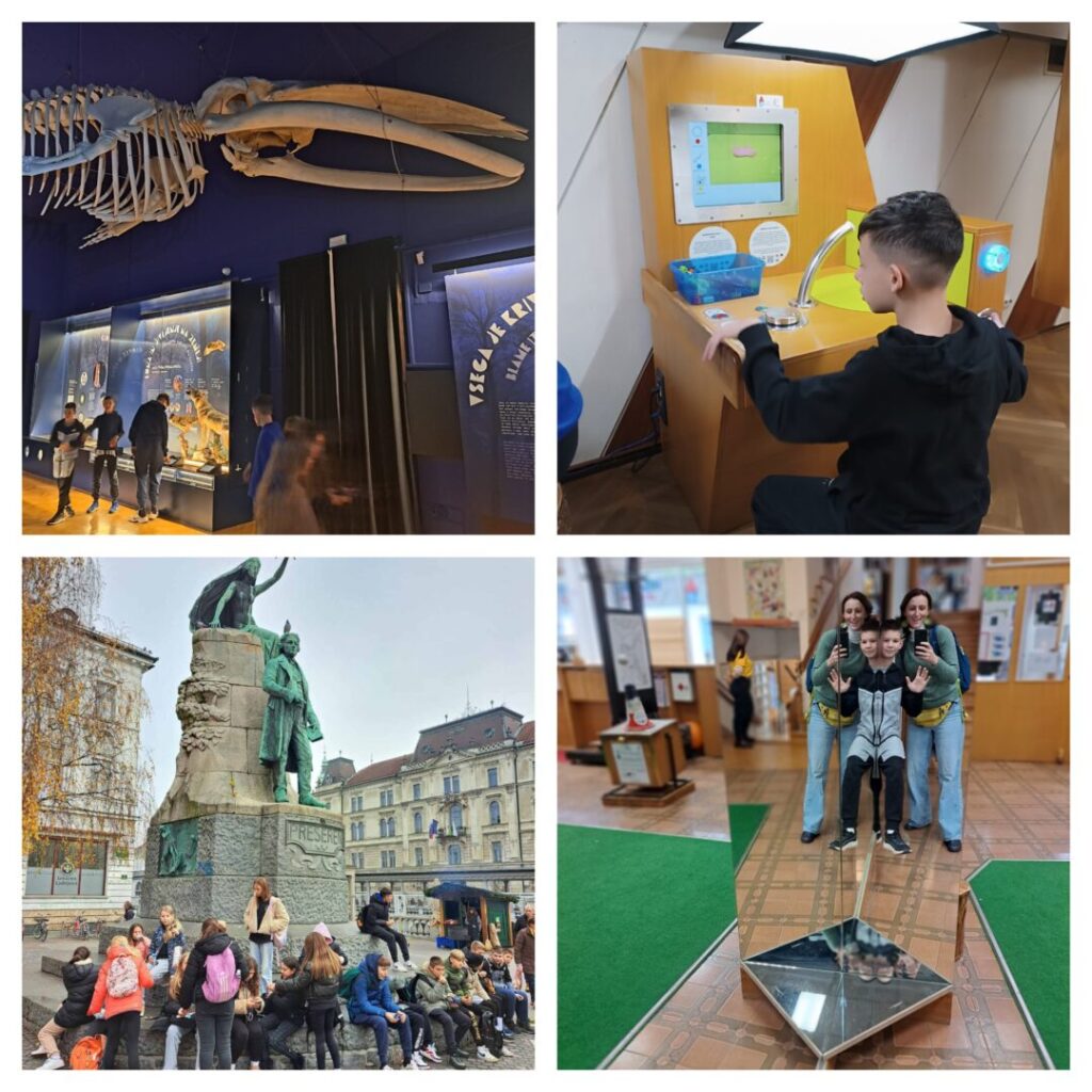 Učenici predmetne nastave su dana 9. prosinca proveli nezaboravan dan u Ljubljani na terenskoj nastavi. Posjetili su Hišu eksperimentov i Prirodoslovni muzej, gdje su uz stručno vodstvo otkrili mnoštvo fascinantnih činjenica – od toga da je u Sloveniji pronađen fosil mamuta, da kitovi u perajama imaju “prste”, da se nutrije uzgajaju zbog krzna te su, pobjegavši s farmi, naselile prirodu, pa sve do toga kako se od šumeće tablete može napraviti mala “raketa” ili kako se banana uz pomoć tekućeg dušika može pretvoriti u pravi čekić.